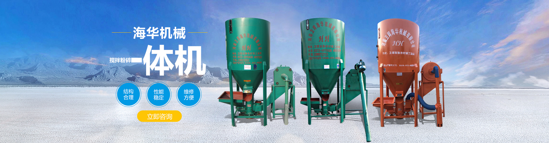 衛(wèi)輝市海華機(jī)械有限公司專(zhuān)業(yè)從事料塔料線(xiàn)、飼料攪拌機(jī)等方面的研發(fā)廠(chǎng)家,主要生產(chǎn)銷(xiāo)售散裝料塔、不銹鋼攪拌機(jī)、臥式攪拌機(jī)、小型飼料粉碎機(jī)、顆粒機(jī)、混合機(jī)等飼料機(jī)械設(shè)備。